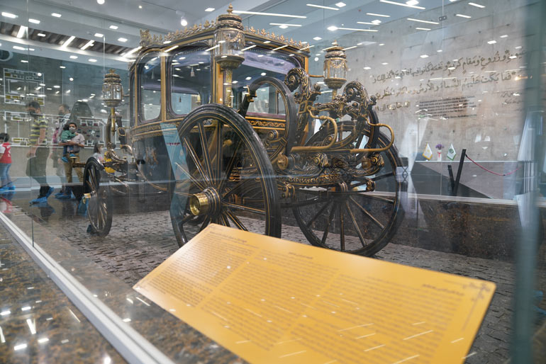 بعضی از نمونههایی که در موزه تماشا میکنید جزو خودروهای کمیاب و ارزشمندی هستند که نمونههای نادر صنعت خودرو سازی به شمار میروند. از خودروهای نادر و ارزشمند موزه میتوان به پیرس آرو لیموزین آب طلا اشاره کرد؛ این خودرو تنها نمونه پنتر لیزر تولید شده در جهان و تنها اتومبیل حاصل کار مشترک کمپانیهای مرسدس بنز، پورشه و فولکس واگن است. از دیگر خودروهای نادر این مجموعه غنی و ارزشمند میتوان به مدلهای رولزرویس همچون رولزرویس سیلور گوست احمدشاه قاجار، مدل افسانهای فانتوم 4 ضد گلوله، فانتوم 3 و از مجموعه غنی بنز این مجموعه میتوان به مدل استثنایی 500k و 600 لیموزین، SL 190 و دیگر موارد اشاره کرد. شما میتوانید در این موزه جذاب و تماشایی انواع مختلف لامبورگینی، فراری و پورشه را نیز تماشا کنید و قطعا از تماشای این خودروهای کلاسیک زیبا هیجانزده میشوید. بخش خزانه این موزه به نمایش سوپر اسپرتها اختصاص دارد که از خودروهای منحصربهفرد و معروف این بخش میتوان به لامبورگینی میورا و کانتاش، فراری سوپر فست 500، بیتزارینی، مدلهای مختلف پورشه همچون پورشه 911 توربو و دیگر موارد اشاره کرد. همچنین جالب است بدانید در بخش دیگر این موزه خودروهایی را تماشا خواهید کرد که تولیدات کارخانهجات آمریکایی هستند. از خودروهای آمریکایی این بخش میتوان به کرایسلر 300 با امکاناتی همچون یخچال، سیستم پخش کارتریج، داشبورد آب طلا کاری شده و غیره، کادیلاک فلییت وود، لینکن کانتیننتال لیموزین و دیگر موارد اشاره کرد. بخش دیگر جذاب و تماشایی این موزه به کالسکهها اختصاص دارد. در این بخش از موزه شما کالسکه سلطنتی ناصرالدین شاه قاجار را میبینید که جزو قدیمیترین کالسکههای ایران به شمار میرود. یکی دیگر از کالسکههای این بخش به عنوان کالسکه تاجگذاری معروف است که هر دو کالسکه توسط کارخانه معروف واگن فابریک در کشور اتریش ساخته شدهاند. دربارهی کالسکه تاجگذاری میتوان گفت حدود 100 سال قدمت دارد و در ساخت نمای بیرون کالسکه از طلا استفاده شده و حتی در دوران پهلوی هم کاربرد سلطنتی داشته است. کالسکه سلطنتی ناصرالدین شاه نیز همان کالسکهای است که با آن عازم زیارت حرم شاه عبدالعظیم حسنی شد. برای ساخت این کالسکه باشکوه و زیبا هم از طلا استفاده شده است.