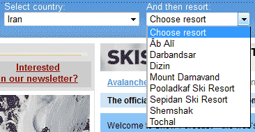 اسکی: برای اسکی هم یه سایت خوب دیگه بهتون معرفی میکنم برادر همین سایت قبلی هست به اسم Snow-forecast.com . بعد از رفتن به این سایت باید نام کشور و پیست اسکی مورد نظر رو انتخاب کنیم :