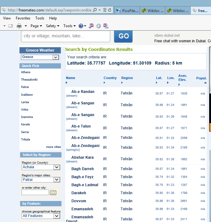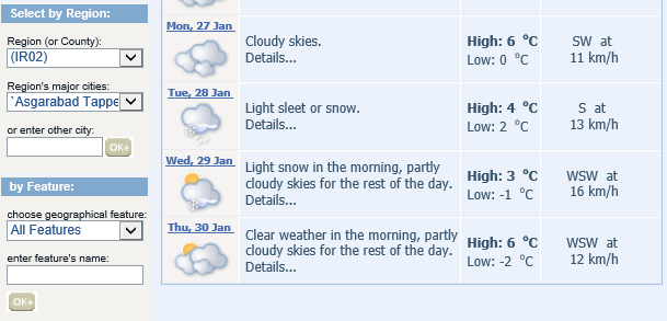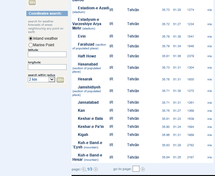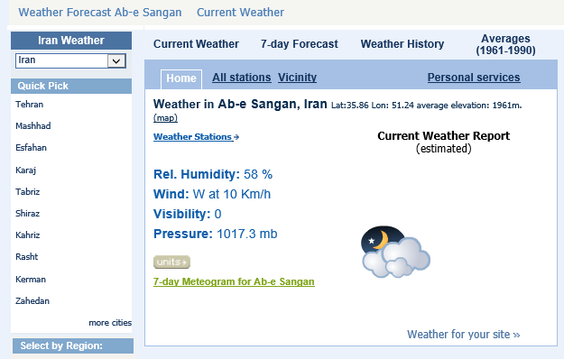 این سایت اینقدر به شما اطلاعات می ده که سرتون گیج بره. چیزی که من نفهمیدم این بود که چرا بعضی از اسامی هنوز مربوط به زمان شاه هستش. در حالیکه اطلاعات هوا شناسیش مر بوط به همین لحظه است.