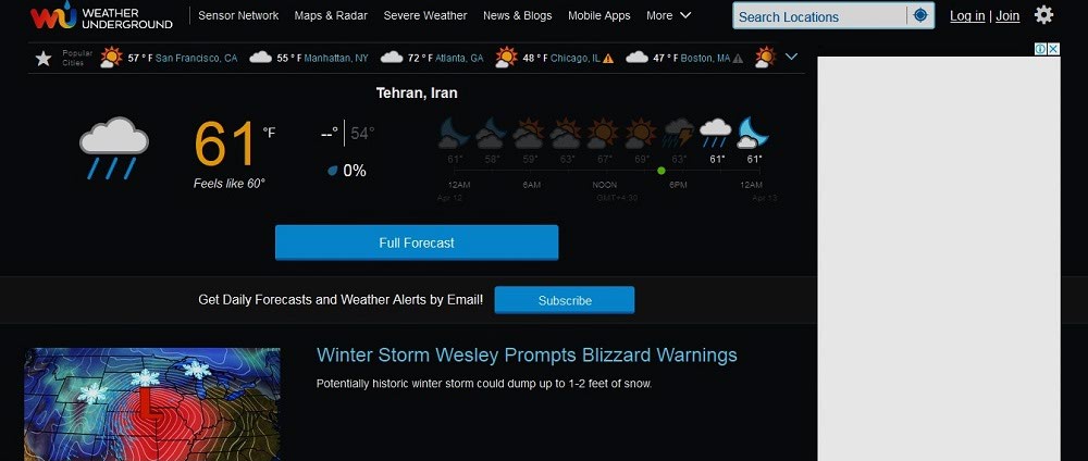 این سایت وضعیت آب و هوایی کشورهای مختلف را به همراه پایتخت آنها نشان می دهد. تصاویری از تغییرات هواشناسی، تصاویر ماهواره ای از کره ی زمین و اخبار جوی مناطق مختلف را نشان می دهد. از دیگر امکاناتی که می توان در این سایت به آن اشاره نمود، برنامه ی هواشناسی برای گوشی در اختیار کاربران قرار می دهد.