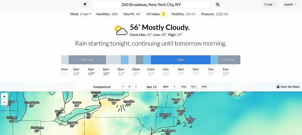 این سایت درجه حرارت، بالاترین و پایین ترین دما، شاخص UK، میزان فشار، میزان رطوبت، میزان بارش، وزش باد را بارگذاری مینماید. همچنین این سایت نقشه های هوایی و رادار را به کاربر نمایش می دهد که با استفاده از این نقشه می توانید حرکت زیبای ابرها را در نقاط مختلف ببینید. شما می توانید هواشناسی هفتگی را در این سایت پیگیری کنید و از دیگر مزیت های این سایت قرار دادن برنامه هواشناسی سایت در اختیار کاربران برای آیفون و اندروید می باشد.