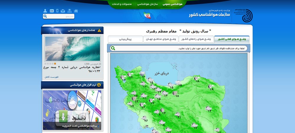 این سایت توسط هموطنان ایرانیمان طراحی و پیاده سازی شده است. میزان دمای کنونی هر شهر را روی نقشه نشان می دهد. همچنین مانند دیگر سایت ها نقشه ی هوایی از کشور و نقاط مختلف آن به کاربران نشان می دهد.